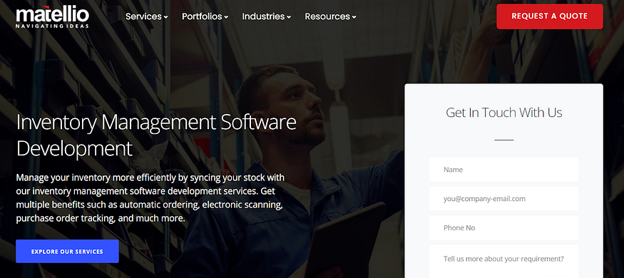 As a leading inventory management software development company, Matellio, aims to help you redefine your inventory and warehouse operations. Whether stock syncing, re-ordering, inventory tracking, or even upselling the products with fewer expiry dates, their smart inventory management solution can automate all those tasks efficiently.