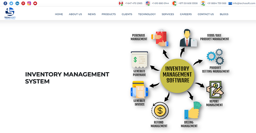 Techasoft offers the best inventory management system services to their customers for the easy tracking of deliveries, sales, orders, and many other things. They assure their client the best work at the lowest possible prices.