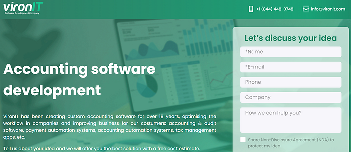 VironIT has been creating custom accounting software for over 18 years, optimizing the workflow in companies and improving business for their customers. They are a team of passionate and experienced developers who are committed to creating innovative and user-friendly accounting software that meets the specific needs of their clients. Their goal is to help businesses streamline their accounting processes, improve efficiency, and gain valuable insights into their financial data.